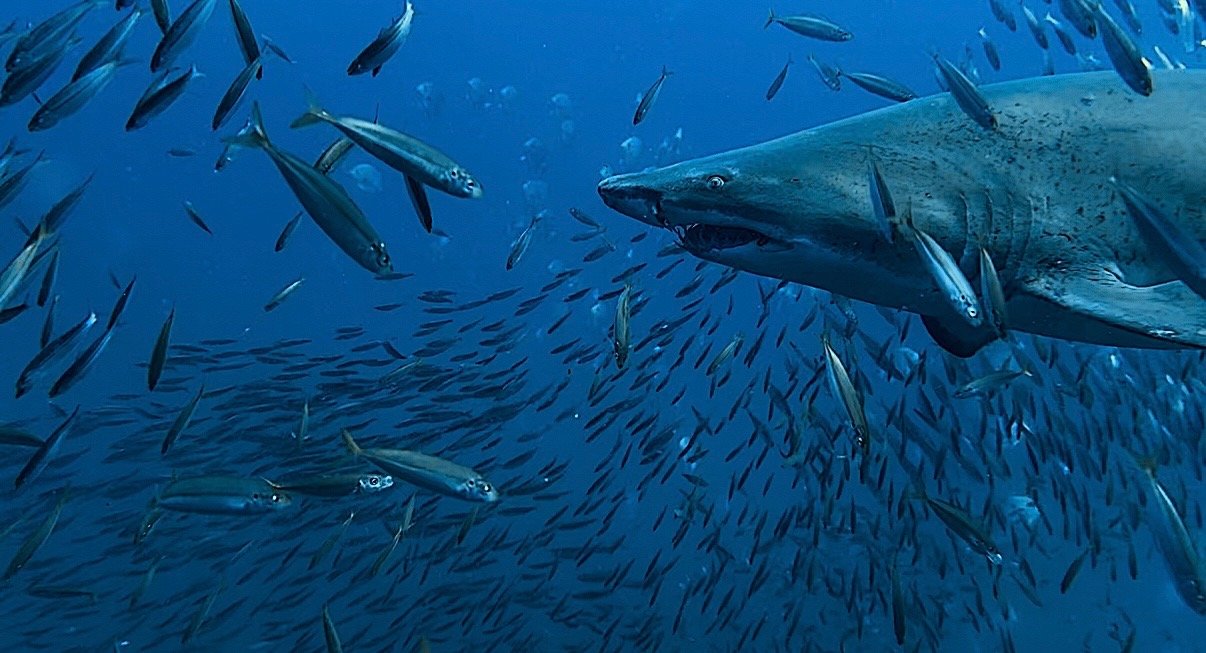 Expect deeper ocean dives with variable conditions. Water temps typically sit in the mid-70s, and those cooler currents are what bring in the schooling fish, sand tiger sharks, and abundant marine life this area is known for. These are dives that feel earned — and wildly rewarding.